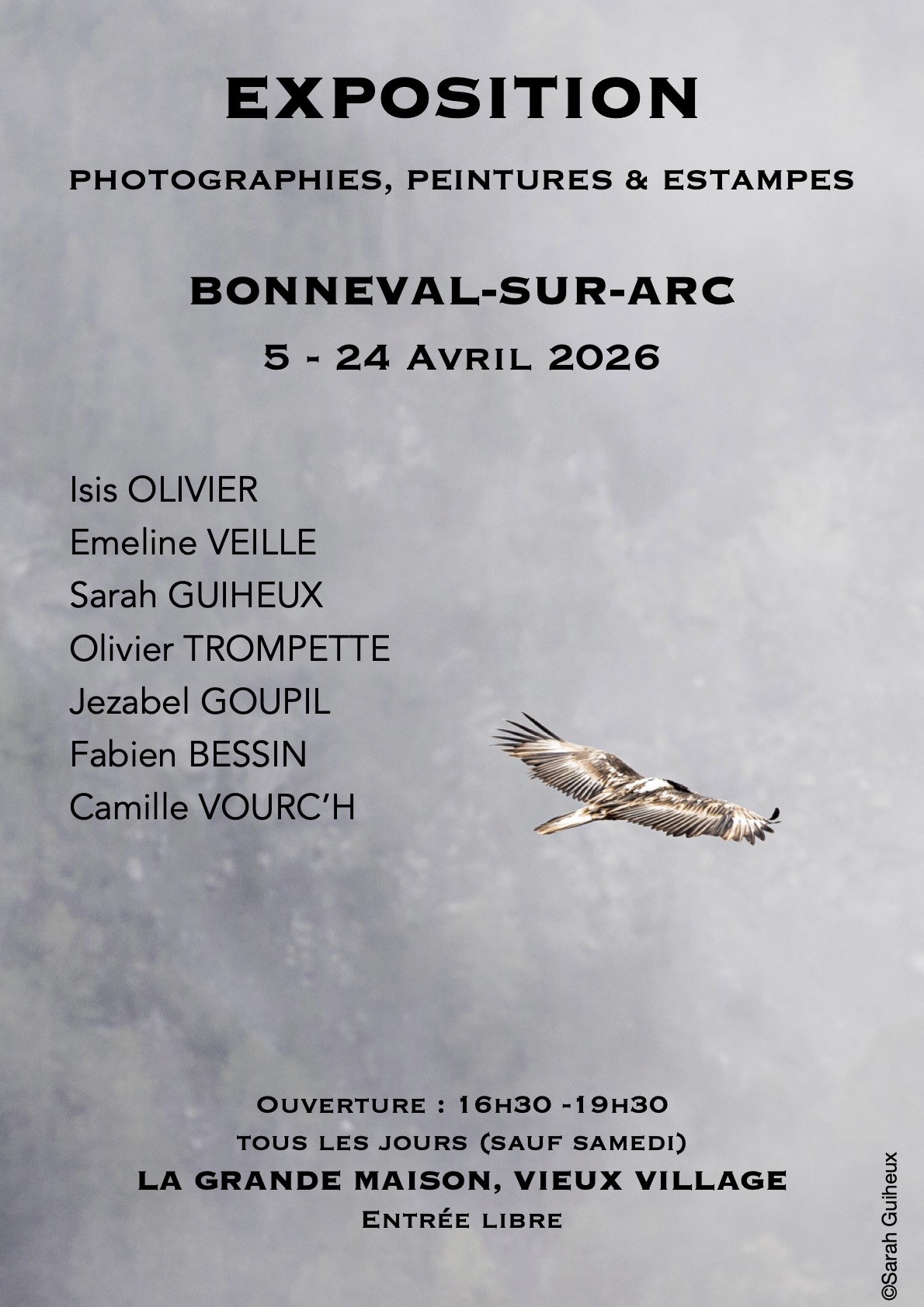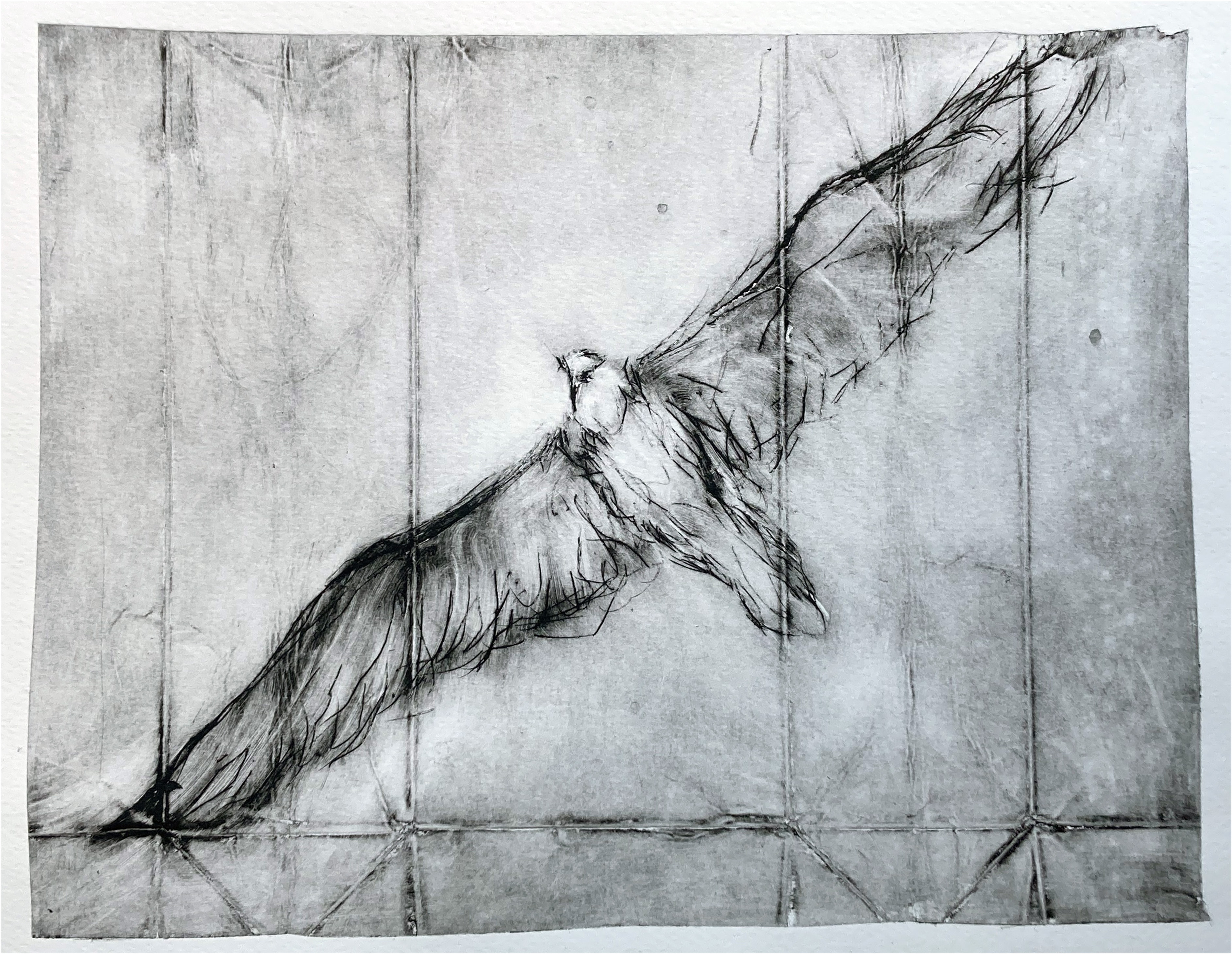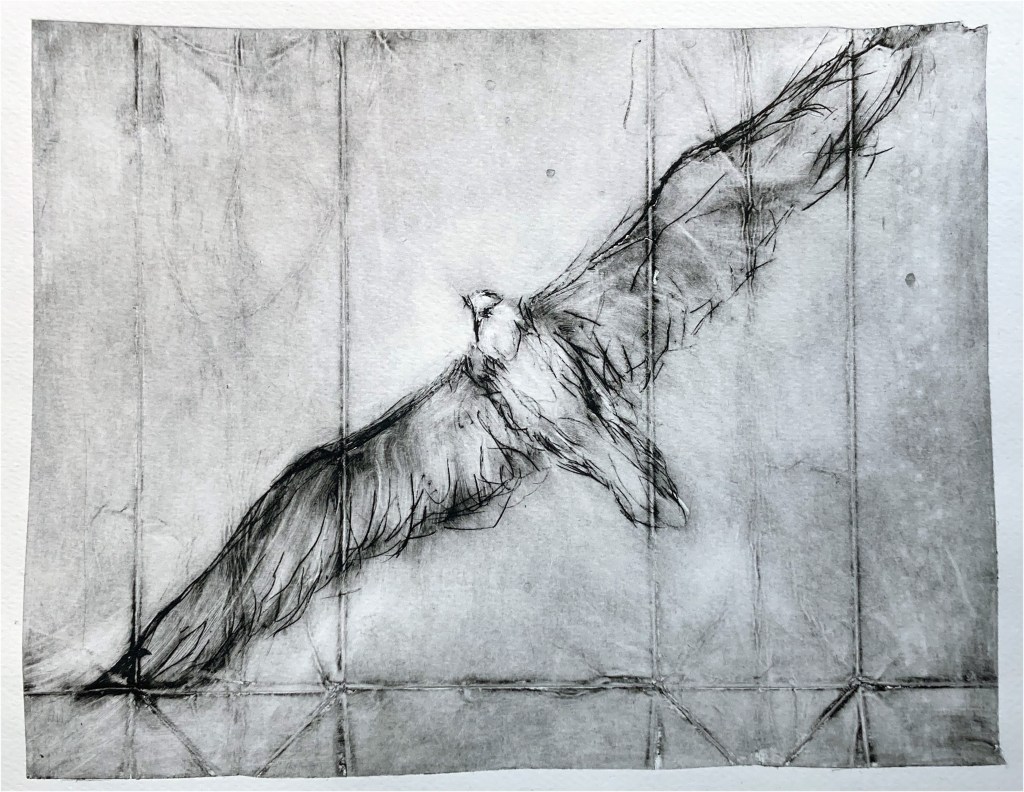 Gypaète barbu, Gorges de la Jonte. Impression pointe sèche sur papier BFK Rives.